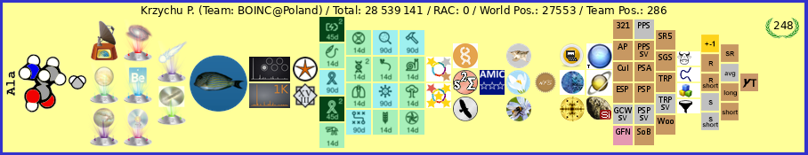 | 13 | Maky | 230 384 248 | 328 258 | IMF - BOINC Team | 1 |