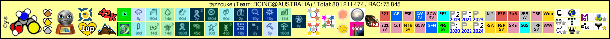 | Proteins Predictor@home | Herge | 4305 | 23 045 | 0 | Québec | 11 | Canada | 238 |