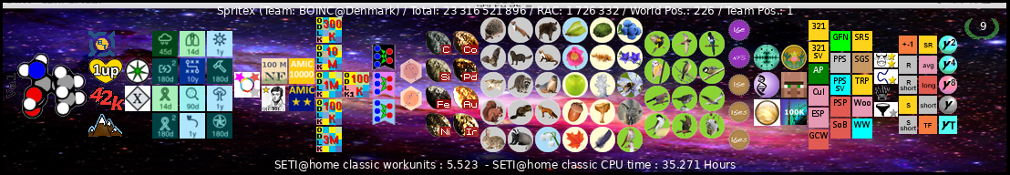 | Seti@home | ABT Chuck P | 175150 | 316 668 | 0 | AOL Beta Testers SETI Team | 8 | United States | 73737 |