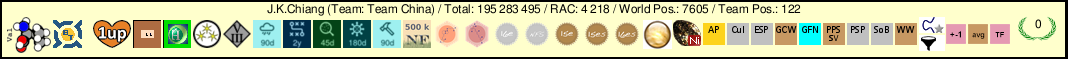 | Project | User name | Pos. | Total | RAC | Team | Country | ||