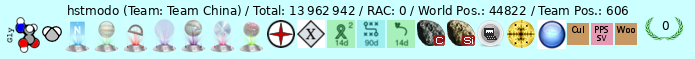 | SiDock@home | yeroon | 1031 | 1 975 423 | 0 | XtremeSystems | 8 | Canada | 45 |