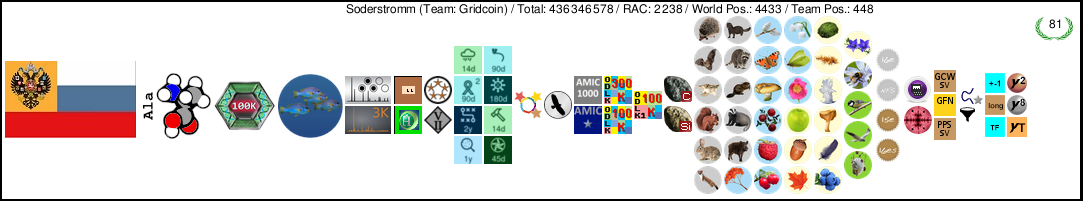 | Project | User name | Pos. | Total | RAC | Team | Country | ||