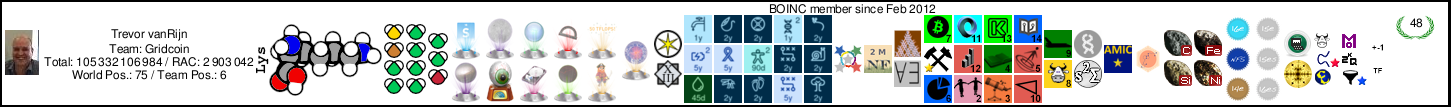 | World Community Grid | bunnylai | 9421 | 7 615 767 | 0 | BOINC@Taiwan | 97 | TAIWAN | 144 |