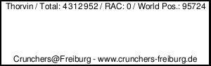 | Rosetta@home | Garry Aernouts | 80704 | 165 902 | 0 | The Final Front Ear | 28 | United States | 25646 |