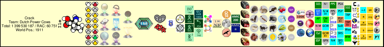 | Seti@home | Zapa | 98945 | 794 723 | 0 | Gridcoin | 1141 | Spain | 1268 |