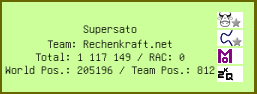 | Project | User name | Pos. | Total | RAC | Team | Country | ||