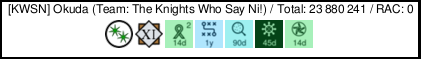 | Project | User name | Pos. | Total | RAC | Team | Country | ||