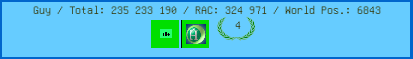 | Project | User name | Pos. | Total | RAC | Team | Country | ||