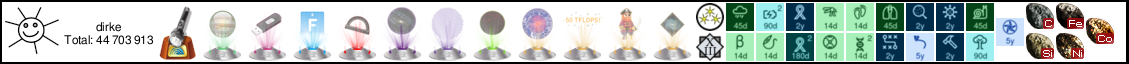 | LHC@home | aqua@sky | 1087 | 1 671 521 | 0 | Team 2ch | 5 | Japan | 11 |
