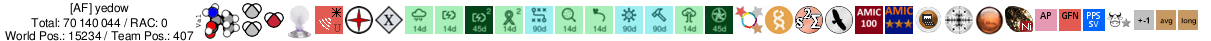 | Project | User name | Pos. | Total | RAC | Team | Country | ||
