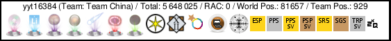 | Project | User name | Pos. | Total | RAC | Team | Country | ||