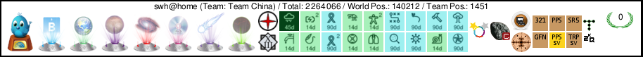 | Yoyo@home | DrRacka | 101 | 42 768 272 | 66 529 | Gridcoin | 25 | Sweden | 3 |