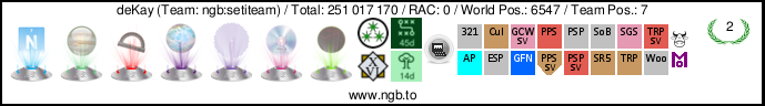 | Seti@home | fkmaster | 25269 | 4 190 767 | 0 | Hungary | 116 | ||