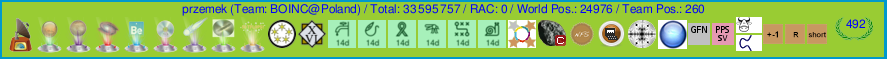 | Rosetta@home | YangJin hong | 5043 | 4 489 484 | 0 | Korea, South | 11 | ||